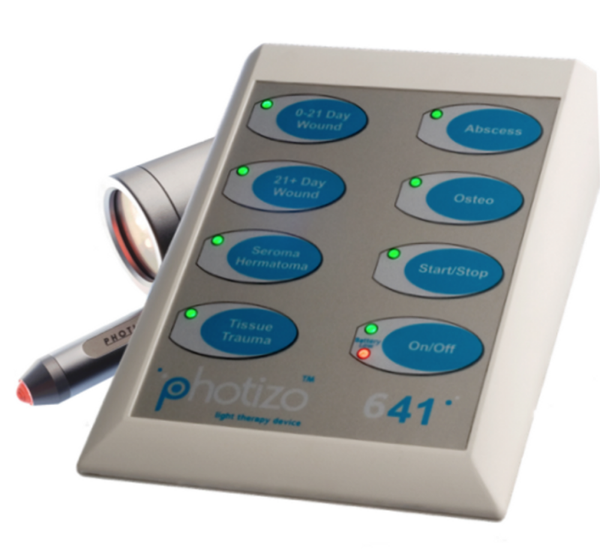 De Photizo ®641 professionele therapeutische lichtunit met voorgeprogrammeerde, unieke en effectieve doseringen van infrarood en rood LED-licht, voor dieren.
